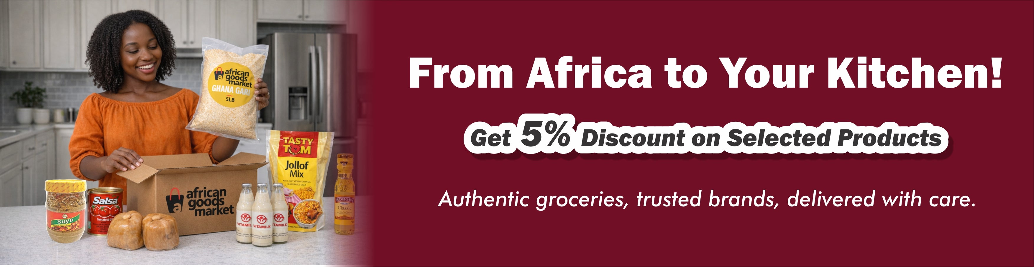 African Goods Market was born from our family’s desire to bring the authentic taste of home closer to every African living in the U.S. From Newark, NJ to households across the country, we source trusted Ghanaian and West African products with care, integrity, and joy, so you can cook, celebrate, and live with the flavors you love.